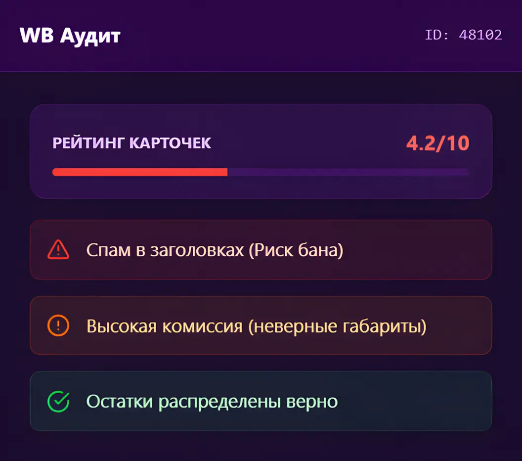 WB постоянно меняет алгоритмы. Мы проверим, соответствует ли ваш магазин текущим требованиям площадки.