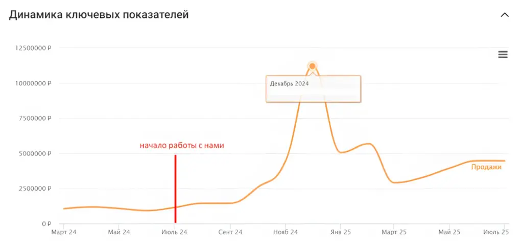Регулярно показывали клиенту результаты и объясняли цифры простым языком. Это помогало быстро принимать решения и усиливать то, что дает рост.